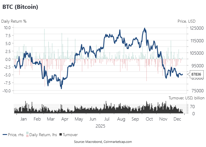 BTC benefited from a more permissive policy environment in the US, but remains very sensitive to risk appetite and the cycle:
