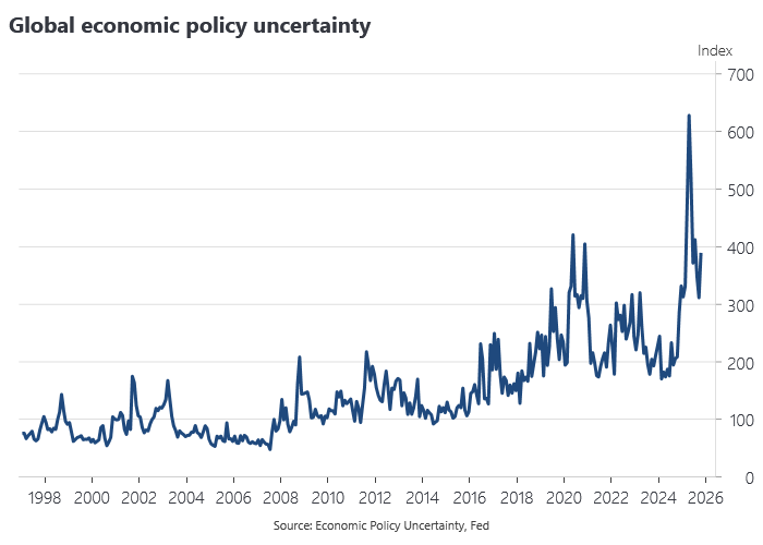 2025 was a year of major shocks, yet from a macro perspective, things went much better than we had any right to expect. The world economy and markets adapted to the biggest trade policy uncertainty shock since the 1930s, war in the Middle East and the wholesale collapse of US institutions and state capacity.