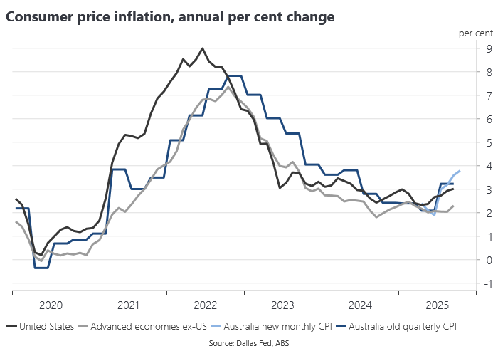 The RBA makes a virtue of Australia’s relative performance, but the inflation rate is notably elevated relative to peer economies.